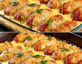 blancs de poulet farcis, nappés d’une sauce crémeuse et recouverts d’une couche dorée de fromage …
