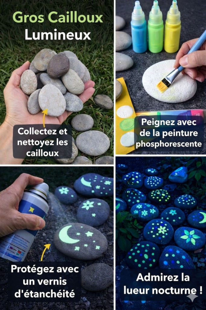Il existe quelque chose de magique dans un jardin qui s’illumine à la tombée de la nuit. Alors que la plupart des décorations disparaissent dans l’obscurité, une idée simple et créative transforme les espaces extérieurs en véritables décors féeriques : les pierres de jardin peintes avec de la peinture phosphorescente.