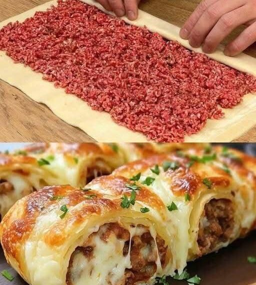 La tortilla à la viande hachée est une recette simple, généreuse et incroyablement savoureuse qui peut facilement remplacer un hamburger classique. Avec une pâte moelleuse, une garniture juteuse et du fromage fondant, ce plat est parfait pour un repas rapide, familial et réconfortant.