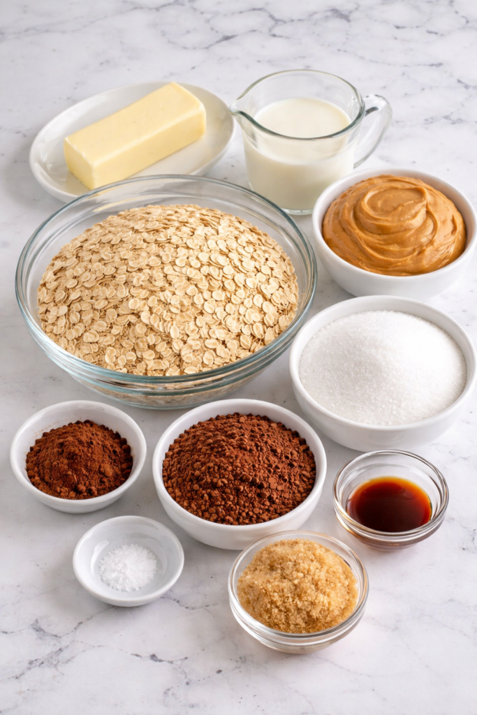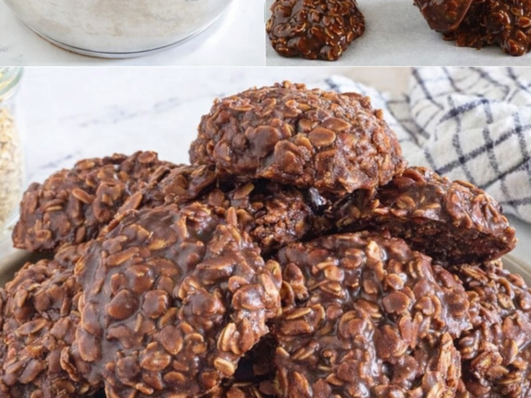 Les biscuits Ă lâavoine sans cuisson au chocolat et beurre de cacahuĂšte sont une vĂ©ritable gourmandise maison, rapide et irrĂ©sistible. Lâimage montre parfaitement les diffĂ©rentes Ă©tapes : un mĂ©lange de chocolat chaud incorporĂ© aux flocons dâavoine, le façonnage Ă la cuillĂšre sur du papier cuisson, puis un magnifique empilement de biscuits brillants et fondants.