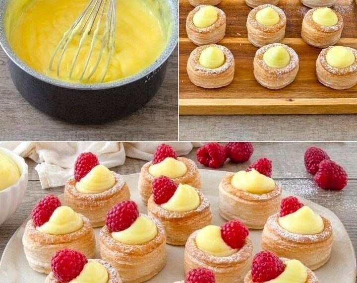🥐 Mini Bouchées Feuilletées à la Crème Pâtissière et Framboises