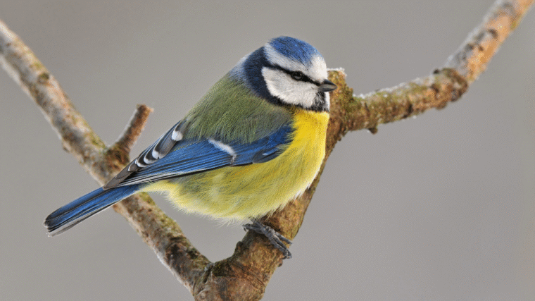 La prĂ©sence soudaine d’une Eurasian blue tit, reconnaissable Ă son plumage bleu, jaune et vert, …