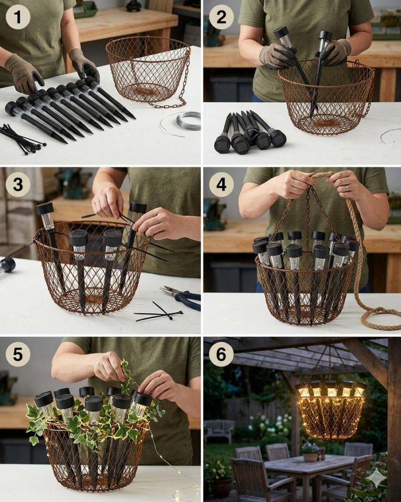 Cette astuce virale prouve que la créativité et l’imagination peuvent transformer des objets simples et peu coûteux en quelque chose de spectaculaire. Avec 12 lumières solaires en plastique, un panier en métal rouillé et un peu d’ingéniosité, vous pouvez créer un refuge lumineux et charmant, parfait pour les soirées d’été, les garden-parties ou simplement pour profiter d’un moment tranquille sous les étoiles.