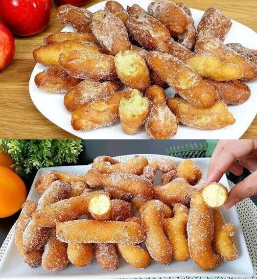 Ces petites douceurs dorées ressemblent à des beignets moelleux, légèrement croustillants à l’extérieur et incroyablement tendres à l’intérieur. Enrobées de sucre, elles offrent une texture et un goût irrésistibles qui rappellent les desserts traditionnels faits maison.